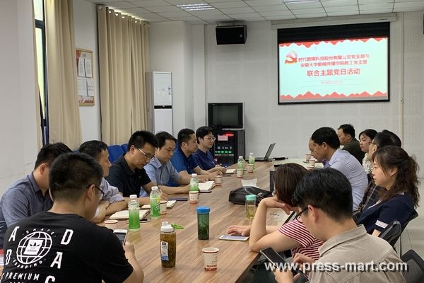 5月(yuè)22日下(xià)午,時代數媒科技(jì)股份有限公司黨支部與安徽大學新聞傳播學院教工(gōng)黨支部開(kāi)展了“以黨建促發展”為(wèi)主題的聯合黨日活動。